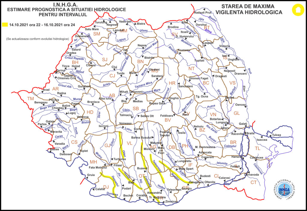 În intervalul 14 octombrie 2021 ora 22:00 – 16 octombrie 2021 ora 24:00 pe râurile din bazinele hidrografice: